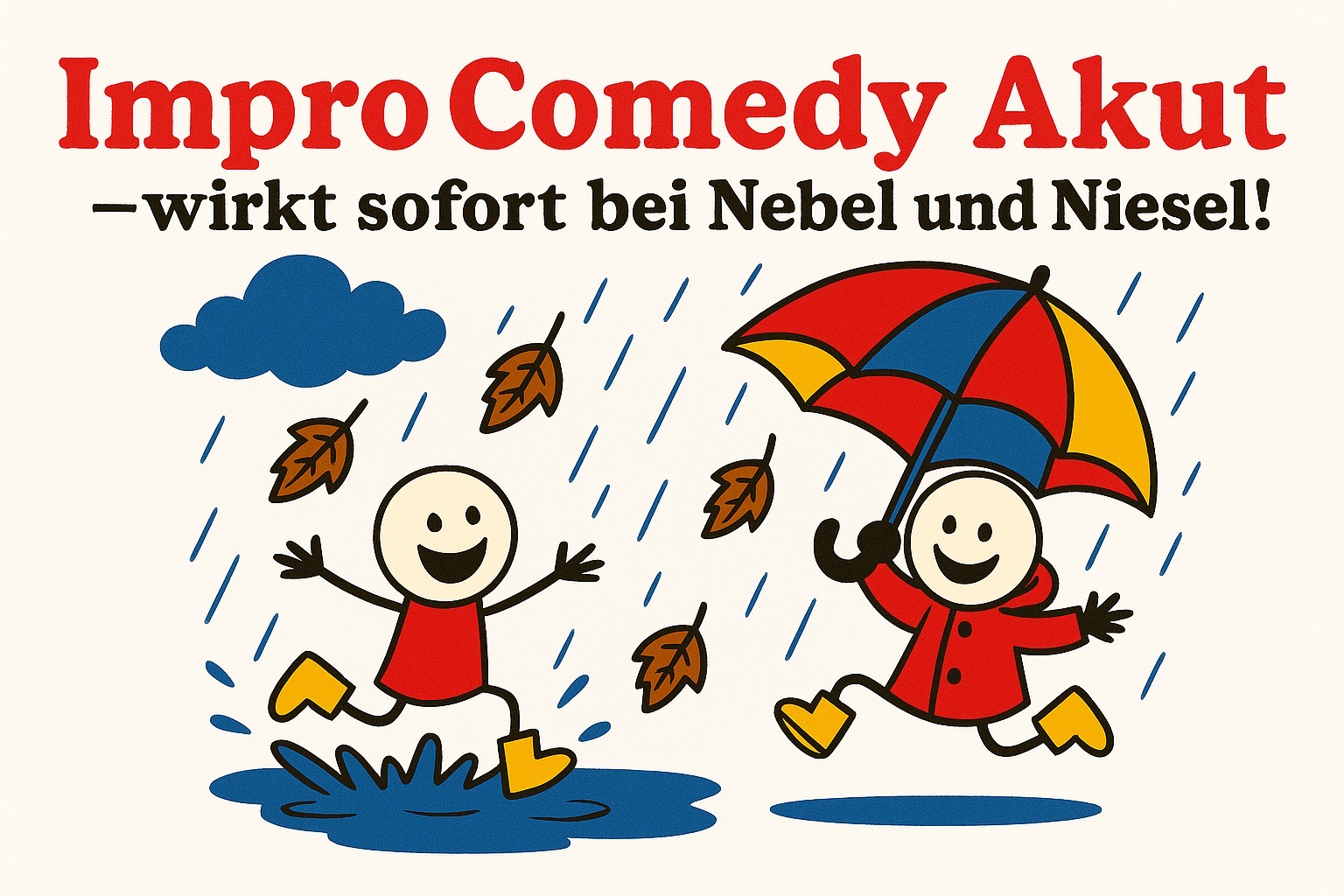 Die beste Nebenwirkung im November. Wenn draußen alles grau ist – machen wir’s bunt. Was passiert, wenn das Wetter drückt und die Stimmung kippt? Wir lachen dagegen an. Und du lachst mit. Der Winter kann warten – wir spielen lieber drinnen. Komm rein, setz dich und lass dich vom Impro-Orkan durchpusten. Durch eure Zurufe entsteht […]